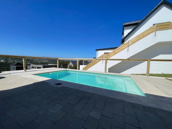 NO TRANSFER DUTY! If you are looking for excellent workmanship, quality finishes and ingenious space-maximising design then this property might just be your kind of home. The North facing aspect and the wood-burning fireplace will keep you cozy in Winter. The undercover outside patio with lovely valley vistas and distant sea views is the perfect setting for lazy summer afternoons by the pool. Perfect light and textures throughout.