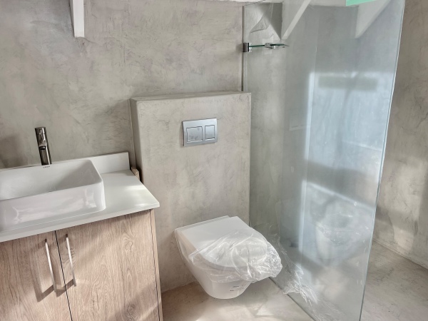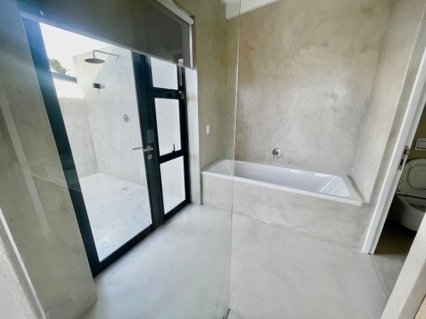 1 Main en-suite with bath and shower and large additional outdoor shower and barroom courtyard.