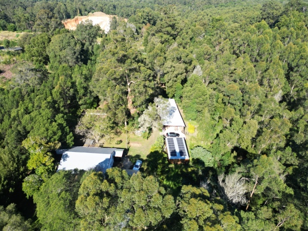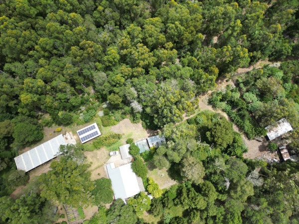 The shed houses the solar system's batteries (16x450 watt Lithium) and 2 (Sunsyn) inverters connected to solar panels which supply the dwellings with power. The farm is off-the-grid but 3 phase electricity is in place.