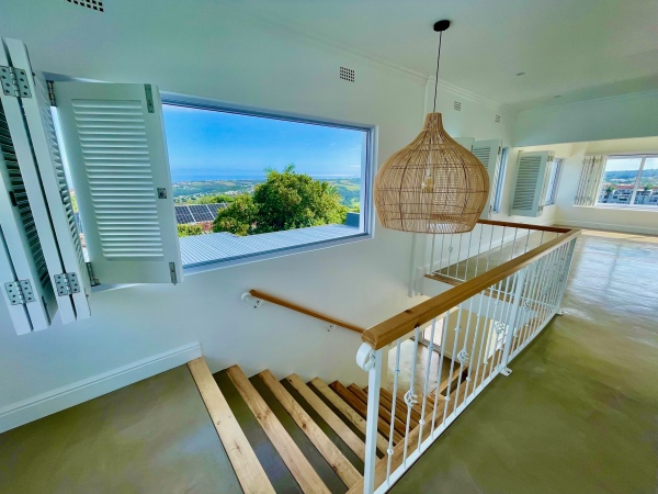 Right on top of the hill with panoramic views. This newly renovated double storey home has everything in place for easy living at the coast. Perfect design with large entertainment areas and North and West facing light which will allow you to enjoy all the seasons of the year. The ground floor has 4 bedrooms ensuite, one of which has its own entrance and could serve as an office or flatlet for family or friends. The main ensuite has a tub overlooking the private garden as well as its own entrance. The kitchen has been revamped and has granite tops, gas hob and its own pantry. The living room's main feature is a wood burning oven optimally placed to maximise warmth in winter. The staircase leads up to the 5th bedroom ensuite and spacious study or second entertainment area with guest WC, library or TV room attached. The views are breathtaking and the perfect space to chill or work. Furthermore, there are also ceiling fans and a separate laundry and outside office or storage room as well as a double garage, a double covered carport and a single carport with its own driveway and space for extra vehicles or a boat. Automated garage, gates and electric fencing in place. This lovely home on the hill has clean lines and inviting finishes. Call for a viewing of this exceptionally well priced home in Plettenberg Bay.